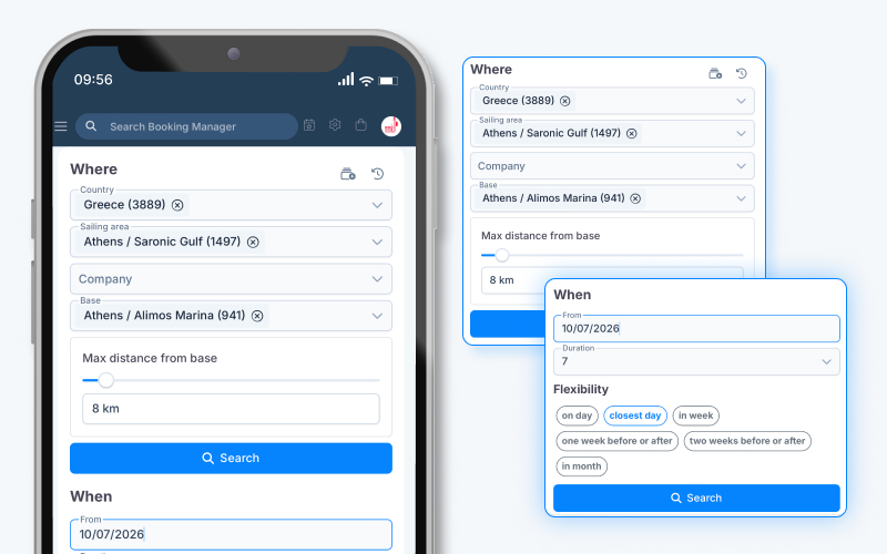 The search for the perfect yacht had never been easier, you can type out the country or sailing area as well as add multiple criterias and find the perfect deal on the largest online booking network.